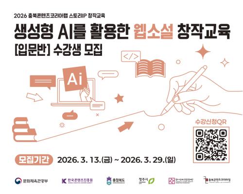 [청주대학교 RISE 사업단] 2026 AI 신기술 콘텐츠 컨퍼런스 청주대학교 RISE 사업단 충북생활연구소에서 2026 AI 신기술 콘텐츠 컨퍼런스를 개최합니다! 미래 산업 및 AI 기술 인프라 전략 세션과 콘텐츠 제작·창작·실전 기술 확장 세션으로 구성되어 AI 대전환 시대, 충북소재 문화예술산업 종사자 및 지역민을 대상으로 특강 및 네트워킹 타임, 패널 토론이 진행될 예정이니 도내 창작자 분들의 많은 관심 바랍니다 :) [행사개요] - 행사명: 2026 AI 신기술 콘텐츠 컨퍼런스 - 기간: 2026. 2. 4. - 2. 5. - 장소: 청주시 엔포드 호텔 직지홀 - 참가대상: 충북소재 문화예술산업 종사자 및 지역민 자세한 행사 내용은 아래 링크를 참조해주세요 :) https://www.instagram.com/p/DUR5I8fDZxz/?utm_source=ig_web_copy_link&igsh=MzRlODBiNWFlZA==