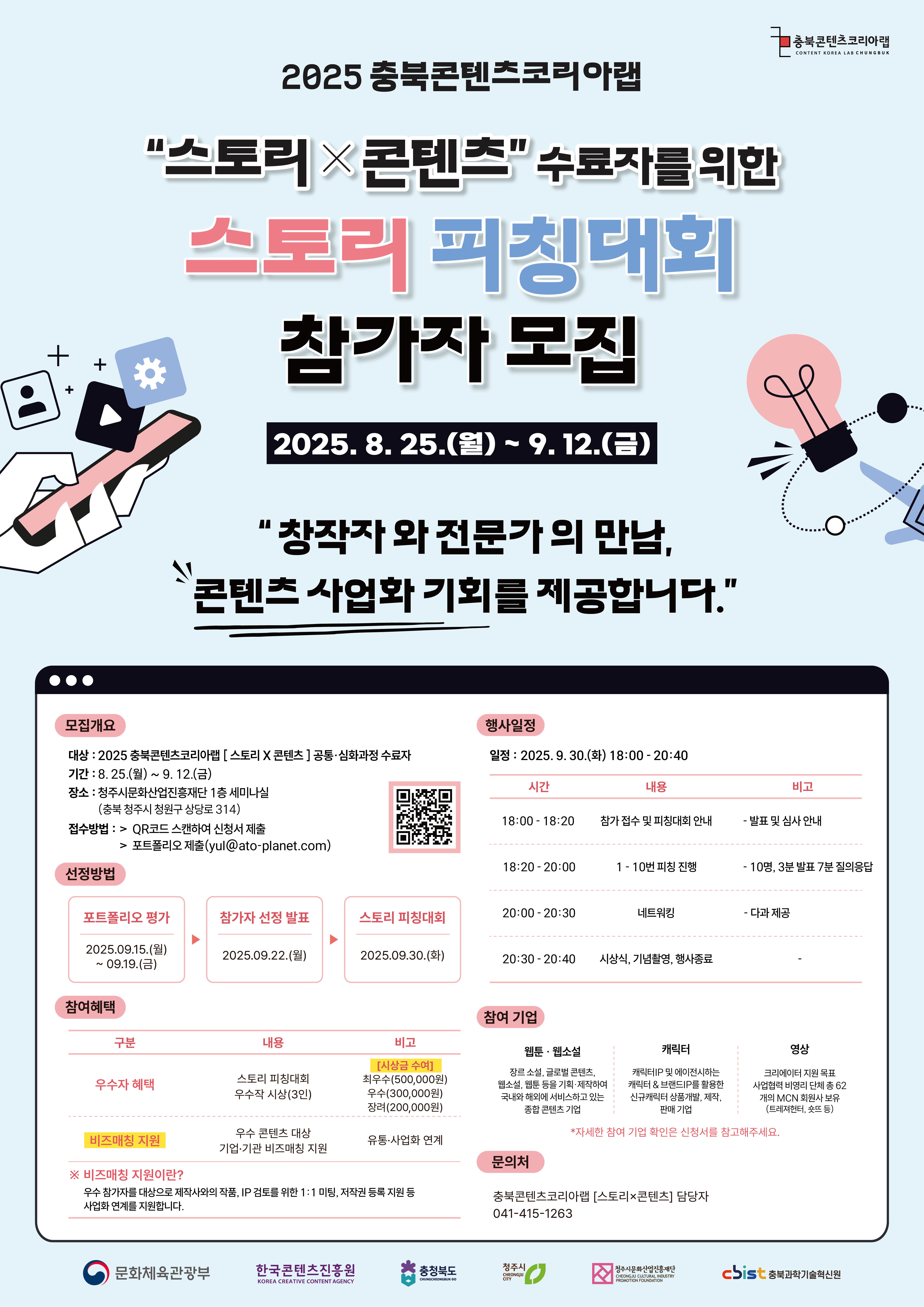 제목 2025 충북콘텐츠코리아랩 스토리x콘텐츠 스토리 피칭대회 참가자 모집 새글 핫이슈